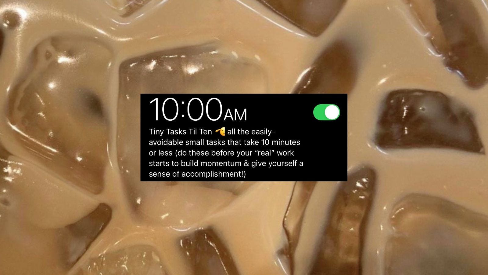 You do all of your “tiny tasks” (things that take less than 10 minutes each) until 10 o’clock in the morning.